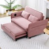 This 65.74'' multi functional sofa bed, with its letter - striped fabric, is a stylish and practical addition to bedrooms and living rooms. Boasting adjustable armrests and backrests, it delivers personalized comfort for lounging or sleeping. It can be easily converted into a bed via a pull - out extension, perfect for accommodating guests. Made with a durable solid wood and artificial board frame, and featuring a polyester blend fabric with letter stripes for a fashionable touch, this sofa comfortably seats two people and supports up to 500 lbs, ideal for compact spaces.
