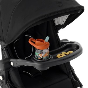 - STAYS LEVEL WHEN RELEASED: It easily unclips from either side of the stroller seat, and remains level so you can get your child in and out more quickly without spilling any snacks.