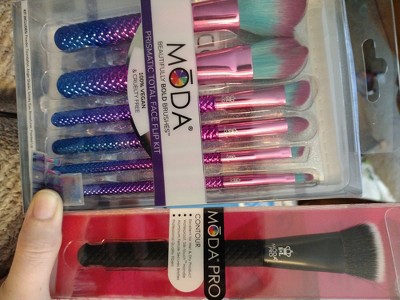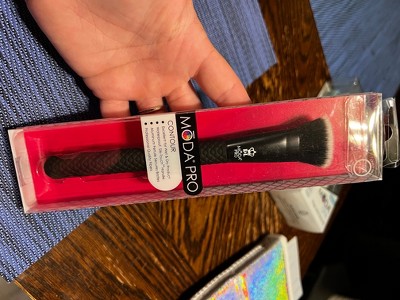 [This review was collected as part of a promotion.] I have been using the Moda Contour brush for awhile now, and I have to say it is my favorite brush to contour with now. The skinnier shape of the fibers really get the areas I regularly contour nicely. The shape of rhe brush helps keep the product exactly where I want it even when blending it out. It also works well as a blush & highlighting brush for those days I don't mess with contour. I clean it daily, and have been for over a month. I have to say the quality is amazing. I have had no fiber damage, or loss. Love it. My only foreseeable issues is I need like 5 more of them.