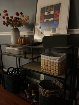 [This review was collected as part of a promotion.] So happy with this tiered entry way table! It came well flat packed with no damage. Once open it was very easy to assemble. It is a sleek and modern design while remaining very functional with storage and shelving