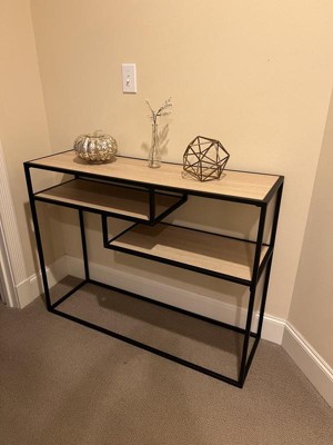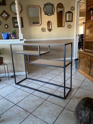 [This review was collected as part of a promotion.] The Walker Edison - 42” Metal and Wood Tiered Entry Table is a perfect fit for our foyer. It is sturdy and balanced and fits well against the wall. The style matches our living room well.