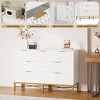 - 1.Modern 7-Drawer Cabinet: Features a sleek honeycomb drawer design with a white glossy finish, adding a contemporary touch to any bedroom or living space.