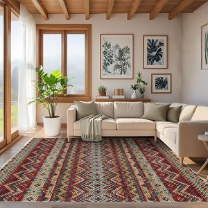 This is an imitation woven indoor carpet. The gradient of tones from the outside to the inside and from deep to light is like compressing the depth of space onto a plane. The printed woven texture is fine and rich in texture, and the overall style leans towards the fusion of modern simplicity and retro charm. The calm color scheme is good for various home scenarios. Whether laid in the living room as the visual center of the space or placed in the bedroom, it can become an indispensable decorative element in the space with its unique patterns.