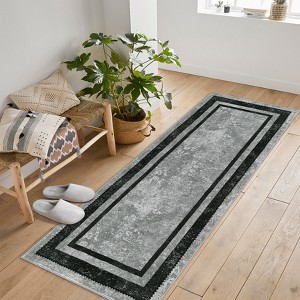Modern Bordered Washable Rug Non Slip Throw Rugs