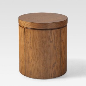 Modern Contemporary Round Solid Wood Veneer Side Table with Storage Medium Brown Oak 18-inch