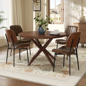Modern Dining Chairs Solid Wood Backrest Upholstered Pu Leather Dining Chairs