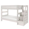 Bring space-saving, rustic style to your room with the Max & Lily Modern Farmhouse Twin over Twin Bunk Bed With Stairs. Crafted with knot-free, solid pine wood and a barnwood-style finish, this bunk bed with stairs is extra sturdy and stylish. The rustic finish lets the natural beauty and variation of the wood grain show through. Because of this, there may be slight visual variations in the overall finishes. This bunk bed features 13.5-inch guardrails on the top bunk for safe sleep. Secure banister and anti-slip steps provide safe and easy climbing into bed. A staircase can be installed on either side of the bed to fit any bedroom layout. Plywood slats and a metal underbed support bar can accommodate up to 400 lbs. of resting weight per bunk. This bunk bed is compatible with mattresses between 5 and 8 inches thick. Twin over twin bunk bed with stairs measures 98.5" L x 43.5" W x 63.25" H. No box spring or bunkie board is required for this bed. This bunk bed meets or exceeds Federal safety standards for kids furniture. 2+ adults make assembly simple and easy. The bunk bed for kids from Max & Lily offers exceptional quality and affordability that kids and their parents will enjoy for years to come. Max & Lily is a member of the Maxwood family of brands - the kids furniture experts bringing a tradition of superior quality, safety and fun!