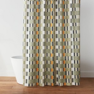 A: The shower curtain is made from 100% cotton, providing a soft and durable texture.