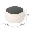 Modern Glam Round Ottoman Bench with Tufted Velvet Upholstery and Tempered Glass Top for Living Room -3irtyhousy