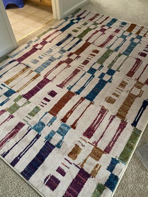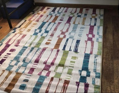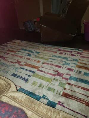 [This review was collected as part of a promotion.] So this Threshold Multicolored Abstract rug is simply gorgeous. The colors are vibrant and the abstract print is just eye catching. I love how elegant and neat look it has given to my dressing room. The rug is made 100% polyester. It feels soft under the feet. The measurements are 5 ft x 7 ft (1.5 m x 2.1 m). I’m throughly enjoying it❤️. I highly recommend this Threshold multicolor rug to make your room bright and colorful.😊