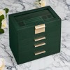- Efficient Jewelry Organization: This Jewelry Box with Glass Lid features 4 layers to neatly store all your jewelry—small pieces in the top 3 layers and sunglasses and watches in the spacious bottom drawer.