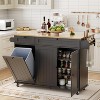 55" Rolling Kitchen Island Cart with Storage, Mobile Table with Spice Rack, Towel Bar & Trash Bin Holder