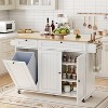 55" Rolling Kitchen Island Cart with Storage, Mobile Table with Spice Rack, Towel Bar & Trash Bin Holder