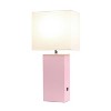 This simple yet modernized 21" table lamp showcasing a blush pink leather body and white fabric shade is the perfect addition to your lighting needs. With a USB port on the side of the base, you are able to conveniently plug and/or charge your device. Our products are designed to enhance your room with elegance and sophistication.