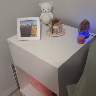 Got this nightstand for a guest room and paired it with a bed frame I also got from target. I liked that it was easy to assemble and wasn’t too bulky but still offered enough storage and space on top for their belongings. I plan to purchase one or two more for myself soon. I would like to also note that the guest room itself isn’t too big so it was a huge plus to offer them some storage without sacrificing too much space in the room.