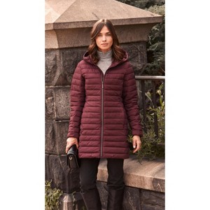 Tackle those Colder Days in this Stylish, Sporty Puffer! This Modern Shaped Puffer with Stretch is designed with channel quilting to flatter your figure and made in a stretch fabrication for optimal comfort and range of motion. This puffer features an attached hood, a zip front closure and zippered pockets. This coat provides the warmth you need while maintaining its beautiful silhouette without the bulk, creating a modern, slim feel.