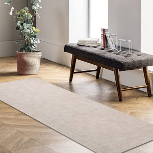 Modern Solid Area Rug – Machine Washable Boho Carpet, Abstract Texture, Beige, 2'x6'