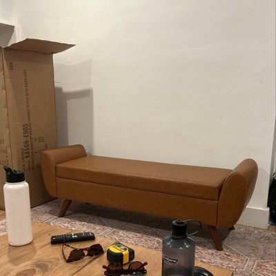 We've had the cream boucle bench for over a year now and it's become my all time favorite purchase from Target! The bench is comfy and beautiful. It spans the entire width of our queen bed giving it the appearance of a mini couch and looks much better than benches which are shorter than the bed. The padded sides and inset legs makes walking around the couch easy with no tripping or bumping of toes, shins or knees. The storage space is ample and fits an extra blanket, throw and pillow. My cats love laying on the couch and it's even withstood their occasional nail sharpening. I love to use it as a place to read while I pedal my mini bicycle.