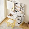 Modern Vanity Desk with Mirror, Storage Drawers & Open Shelves, Compact Dressing Table with Stool for Bedroom Apartment