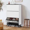 Modern White Shoe Storage Cabinet with 3 Flip Drawers, Slim Wooden Shoe Organizer, Space-Saving Entryway Cabinet