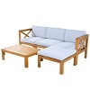 Modular Acacia Wood Outdoor Sectional Sofa Set with Gray Cushions and Coffee Table, Weather-Resistant Patio Seating for Backyard -3irtyhousy