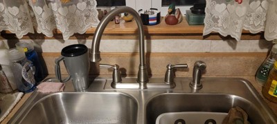 The Moen Banbury Two Handle Stainless Steel Kitchen Faucet is a perfect combination of modern design and practical convenience. Its two handles conveniently provide precise control over temperature and flow. It also includes a side sprayer for added convenience in the kitchen. This faucet's stainless steel exterior is rust-resistant and provides a sleek, stylish look to any kitchen. It is designed to last and is backed by Moen's limited lifetime warranty, so you can trust in its quality.