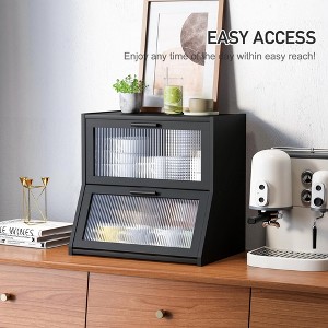MOEPISY Double Layer Bamboo Bread Box for Kitchen Counter Black