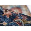 A masterpiece of historical design references, this traditional area rug is rich with period details. Captured in captivating red and navy blue with sky blue details, the Old-World rug design is anchored by a central medallion that draws the eye inward beyond a reverie of flower blossoms, pomegranates and ornamental motifs.