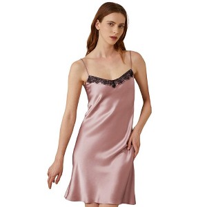 Mommesilk Leaver Lace Split Silk Slip Dress - 1 of 4