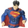 Superman New 52 Bust Bank is about 7 inches tall and weighs about a pound. The bank is made of PVC so it is lightweight and durable. Comes with easy to remove plastic cork in the base for easy access of saved coins and cash.100% ToyImported