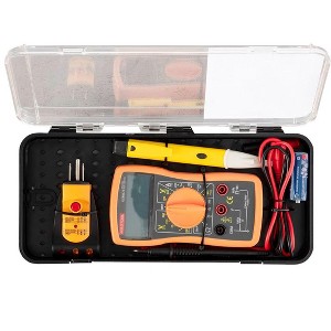 - Includes a digital multimeter, a GFCI receptacle tester.