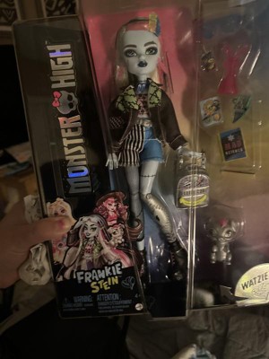 - Monster High Frankie Stein doll electrifies the fashion world in a high-watt look! They come with their pet puppy Watzie, as well as amped-up accessories to spark frightful fun