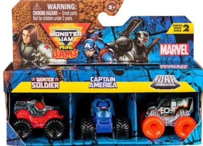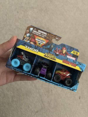 Monster Jam, Marvel Mini Monster Truck 3-Pack, Black Panther, Captain America, Iron Man Die-Cast Monster Trucks