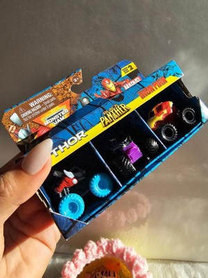 [This review was collected as part of a promotion.] The **Monster Jam Marvel 1:87 Scale Die-Cast Truck 3-Packs** are an absolute hit in our household! These mini monster trucks bring together the thrill of Monster Jam and the excitement of Marvel superheroes, making them perfect for both kids and collectors. Each set features iconic heroes like **Black Panther, Captain America, Iron Man, Thor, and War Machine**, with trucks decked out in their signature colors and symbols. The attention to detail is incredible, from the authentic BKT Tires to the hero-themed rimsthese trucks truly embody the essence of the superheroes they represent. What I love most is how these trucks spark creativity and storytelling. Whether its recreating epic Monster Jam stunts or crafting heroic adventures, these toys inspire endless play. The durable design ensures they can handle the wildest jumps and crashes, and they look fantastic on display when the action winds down. For young fans and superhero enthusiasts, this collection is the perfect blend of action, imagination, and fun. If youre looking to rev up playtime, these Monster Jam Marvel trucks are a must-have!
