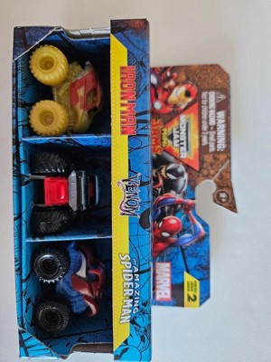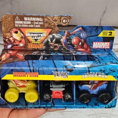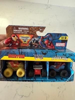 [This review was collected as part of a promotion.] The Marvel Monster Jam set with Venom, Spider-Man, and Iron Man mini monster trucks is fantastic. Venom's truck features a menacing design with black and white colors and a tough build for rough play. Spider-Man's truck shines with red and blue web patterns, delivering great performance on jumps and stunts. Iron Man's truck is sleek with a red and gold finish, handling various terrains smoothly. Overall, this set is perfect for Marvel fans, offering durable, well-designed trucks that bring tons of joy and excitement. Perfect for both kids and collectors!