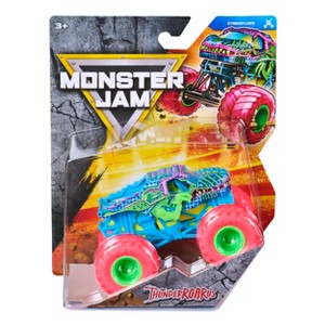 Introducing the all-new, official 1:64 scale die-cast Monster Jam monster truck! This lean, mean, Monster Jam machine features awesome graphics and details. With official BKT Tires, stylized rims, and an authentic chassis, this monster truck embodies the style and swagger of its real-life counterpart! Pull off epic stunts and jumps, just like you’ve seen in the live shows with your 1:64 scale toy truck. This die-cast Monster Jam truck is just like the real thing – only fun size! And now, with even more trucks to collect, including rare food trucks (toys each sold separately), unleash the epic Monster Jam action again and again! Plus, scan the QR code on the packaging to view the collector poster and keep track of your Monster Jam collection. Monster Jam monster truck toys are the perfect gifts for kids ages 3 and up. Bring home your favorite Monster Jam monster trucks and start building your collection today! Includes: 1 Monster Jam 1:64 Scale Monster Truck