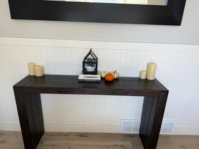 This console table is perfect. It’s very beefy and matches the large beams in our house. My husband loves it, too!