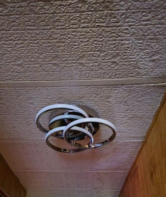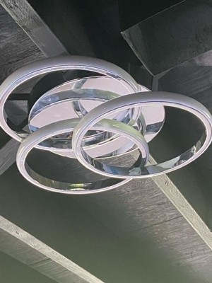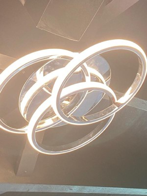 [This review was collected as part of a promotion.] Wow this light is gorgeous. I plan to install it the family room. It’s a beautiful chrome light with three rings that light up that gives it a very modern flair.
