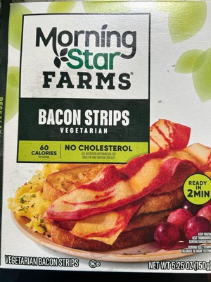 - Includes 1, 5.25oz box containing frozen MorningStar Farms veggie bacon strips; Packaged for freshness and great taste