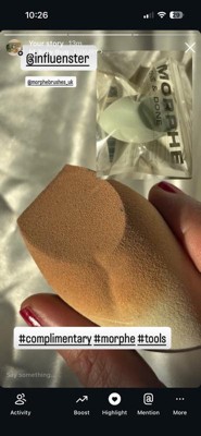 [This review was collected as part of a promotion.] I was kindly gifted this @morphe makeup sponge by Influenster . It’s so soft and blends the foundation on the skin so well . I love that it has a pointed side , a flat surface and a rounded edge too , making it perfect for different makeup application . Definitely a good makeup sponge for everyday makeup routine !