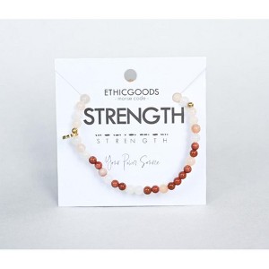 STRENGTH Your power source.A reminder of the strength within and that no matter how many times you get knocked down, you have the strength to get back up.This bracelet looks great alone or stacked with your other favorite Morse Code or stone stacking bracelets!How to read your jewelry: A Morse Code dot is one bead and a dash is two beads in the alternating colors. Start at the small gold spacer bead and follow the Morse Code spelling around the bracelet!Your purchase helps to provide economic empowerment for women who are survivors of human trafficking and exploitation. Each piece is handcrafted by the woman it helps to employ. Through wearing Ethic Goods, you become a meaningful part of her story, and give freedom to women around the world.