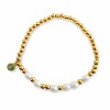 - Beads: 4mm 18k gold-plated PVD round & tube beads (plated over stainless steel) Length: 6.75"" | Stretches to fit up to 7.5" Fit: Comfortable elastic stretch band Materials: Waterproof, sweatproof, tarnish-resistant 18k gold PVD over stainless steel, glass spacer bead
