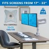 Create a healthier workspace with this Full Motion Dual Monitor Desk Mount that can tilt, swivel, rotate, and move up and down. Gas spring arms creates effortless adjustability. Sturdy design allows monitors to be positioned in portrait or landscape mode. Silver finish is sleek and modern. Our monitor mount distinguishes itself from competition with multiple features to ease the installation such as top-mount base, modular arms and quick-disconnect VESA heads that allow you to install this mount within minutes.