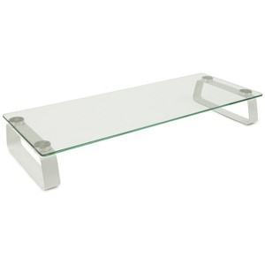 MI-7262 is an elegant, glass and aluminum stand that fits most screens or AV components. Elevate your display off your desk to open up additional space under the stand to stare your laptop, keyboard, or other office accessories. Raises your monitor up to a more ergonomic position. Large weight capacity, holds screens and devices up to 44 lbs.