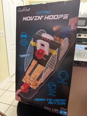 Lame. The backboards don't move smoothly, they move in a janky, sudden motion with enough force to move the entire game board across the table. It doesn't announce the score or who won or anything, which makes it less exciting. Highly overpriced at $35.