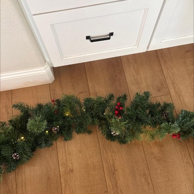 - Natural Design Garland with Pine Cones Holly Berries and Lights