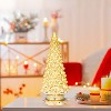 Enhance your holiday ambiance with the 16" Mercury Glass Tree with Twinkling Lights by Mr. Christmas. Crafted from stunning mercury glass, this 16-inch Christmas tree is adorned with mesmerizing LEDs that you can set to twinkle or steady light. Battery-operated for convenience (3 x AA, not included), it's perfect for decorating mantels, side tables, or any corner needing a festive touch. Elevate your decor with this elegant piece that combines vintage charm with dazzling light display, ideal for bringing Christmas magic into your home.