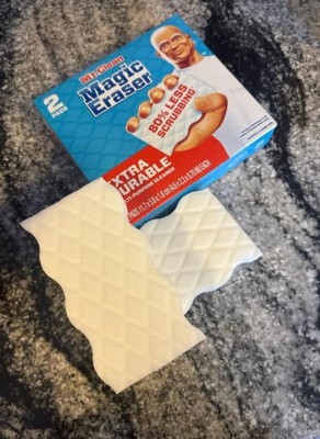I am loving the extra durable Mr. Clean magic eraser! While the magic erasers usually quickly fall apart this seems to do the job on the toughest grimiest places! I primarily have used in the bathroom but also have used it in our garage! Good value!