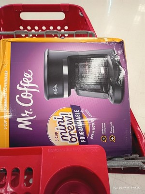 My One Cup Coffe Maker gave out after Years of Service so I decided to go back to regular Brew and saw TARGET had this little Gem of a 5 Cup maker which is all I need. So This Negative Review isn't on Mr. Coffee cause seems this coffee will be a great asset. It's ON TARGET!!! When I saw this was the last one on the Shelf with None in stock I was anxious but skeptical cause it Looked Like it was a Return especially with The Box a bit banged Up & a Scan Label that seemed to indicate it was a Return. I asked a few Store workers and was told sometimes boxes do get jammed up and the sticker on the Box was for Their Inventory. Got the Thing Home, unboxed it, went wash & set it Up for first Use in the Morning and the Lid Wouldn't Close Right. Now I'm looking it Over Real Good... And Well .. I picked the Filter Cup back Up and there was a Piece that was Broken off from the Lid that Honestly was easy to miss at first glance with the sleek black design. Then I looked over the box again & read the other sticker on the Box and yea.... It seems it was returned with a date 12/08/25... Today's December 29th. So Go Figure. TARGET YOU SHOULD BE ASHAMED FOR PLACING A DEFECTIVE PRODUCT BACK ON YHE SHELF!!! SO back to Target I Go for a Return... Thanks for Wasting my Time!!!