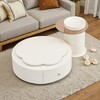 This modern two-piece coffee table set blends elegance, versatility, and practical storage into a beautifully designed centerpiece for any living room. Featuring a stunning flower-shaped coffee table with a full 360° rotating top and a matching tempered glass side table, this set can be arranged together or used separately throughout your home. Its soft cream-toned finish, glass detailing, and multifunctional layout make it a stylish and convenient addition to contemporary spaces. Product Features